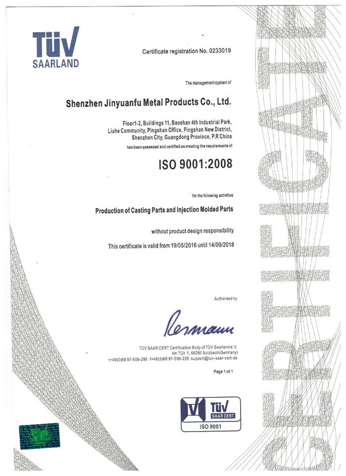 深圳市金源福五金制品有限公司成立于2003年。公司擁有8000多平方米生產(chǎn)廠(chǎng)地、開(kāi)發(fā)與管理精英人才、技術(shù)專(zhuān)業(yè)、設(shè)備精良、交通便利、服務(wù)周全、具體設(shè)計(jì)、開(kāi)發(fā)、制模、出樣、生產(chǎn)到成品出貨一體化模式生產(chǎn)廠(chǎng)家。已通過(guò)ISO9001:2008ISO1440/TS16949:2009國(guó)際質(zhì)量體系認(rèn)證。專(zhuān)業(yè)生產(chǎn)鋅合金壓鑄、鋁合金壓鑄產(chǎn)品、汽車(chē)配件、汽車(chē)后視鏡支架、車(chē)載導(dǎo)航散熱器、LED散熱器、LED燈罩、數(shù)碼電子五金結(jié)構(gòu)件、家具五金裝飾件、標(biāo)牌(LOGO)等五金壓鑄產(chǎn)品。